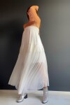Elbisenin straplez bölümünde 3 cm genişliğinde lastik kullanılmıştır. Bu bölüme 3 mtlik kuşak sabitlenmiştir. Böylece lastik görünümü kapatılmaktadır. Maxi ve geniş kesimdir. Uçuş uçuş bir elbise hayal edenler için inanılmaz güzel bir parçadır.