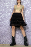 TÜL ŞERİTLİ BELİ LASTİKLİ DİZ BOY KAHVE ETEK